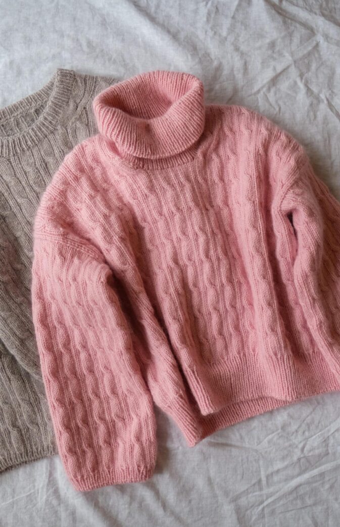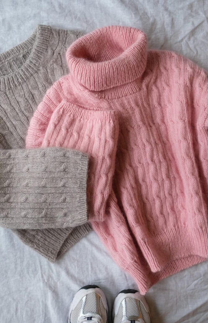 Avbildet i «Milk and Cookies» Pop Merino og «Latte lover» Hip Mohair, str XS-S