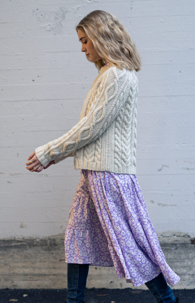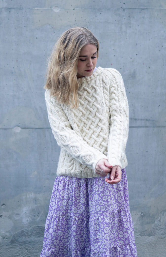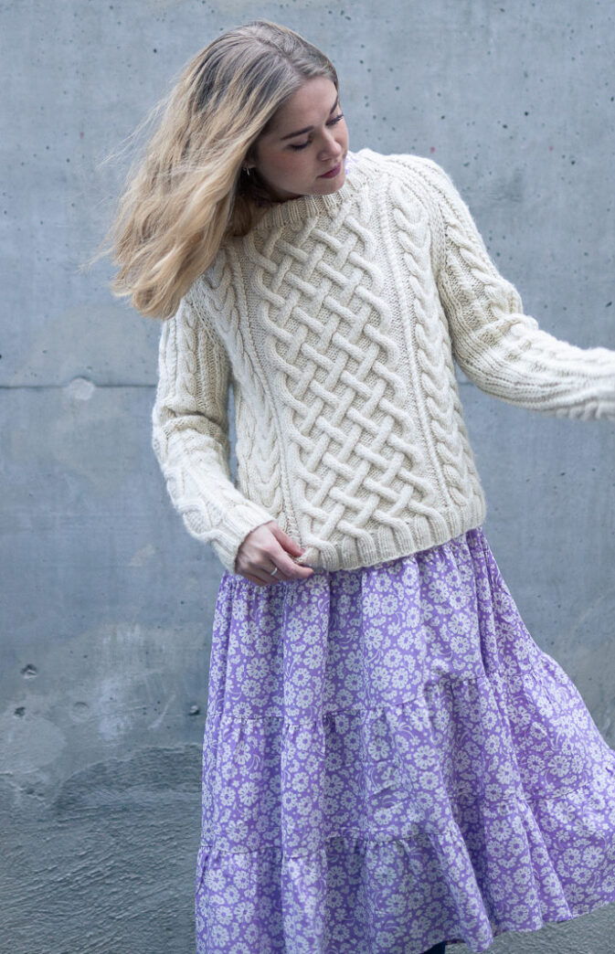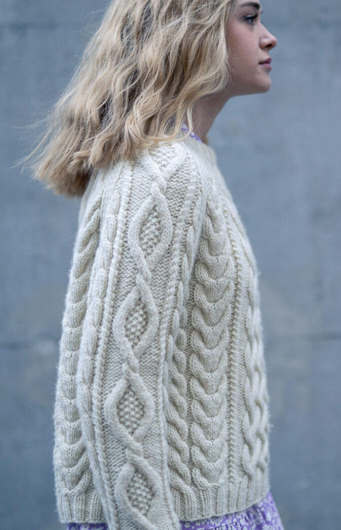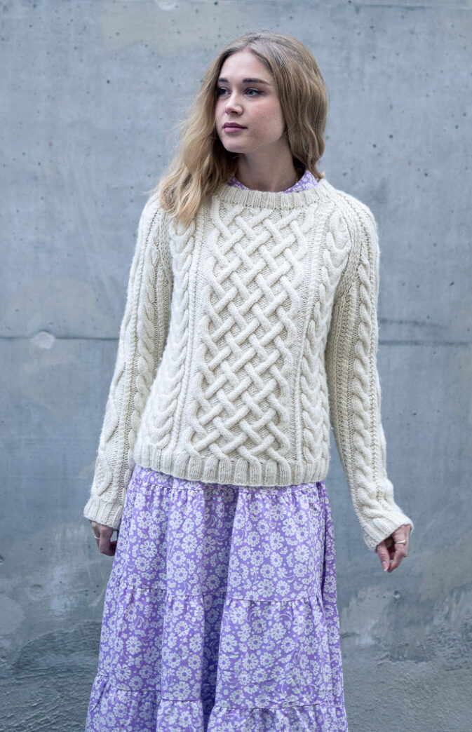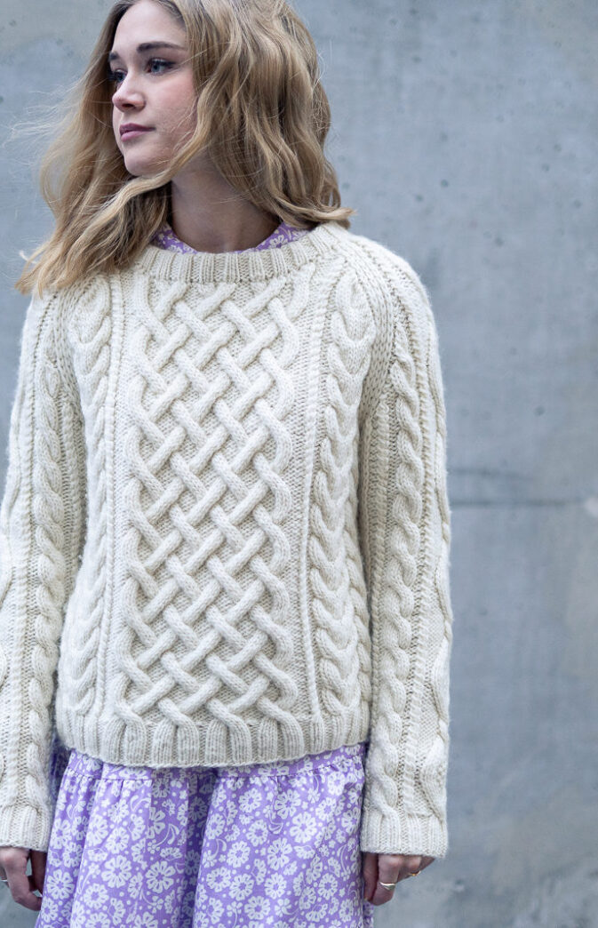 Strikkeoppskrift flettegenser til dame. Nydelig klassisk genser med fletter. Strikkes nedenfra og opp. Gøy strukturstrikk i Hip Wool.