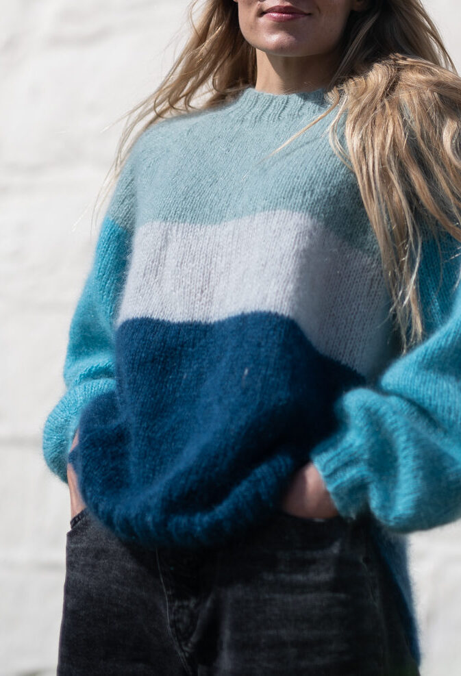 Blå genser "Petrol", "Foxy grey", "Minty Breeze" og ""Holiday sky" (str M)