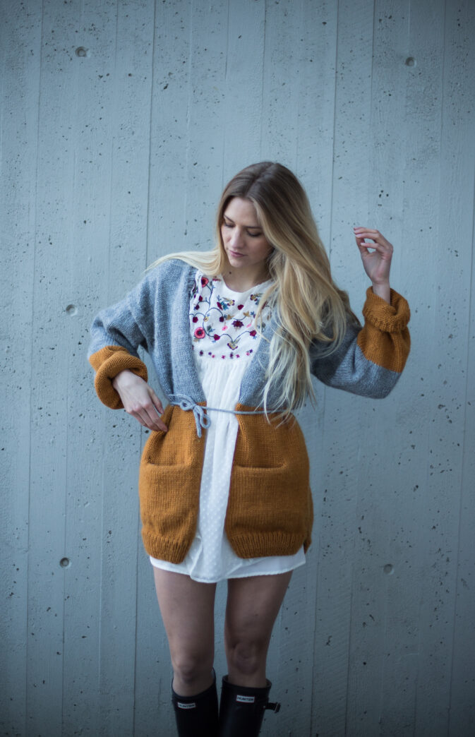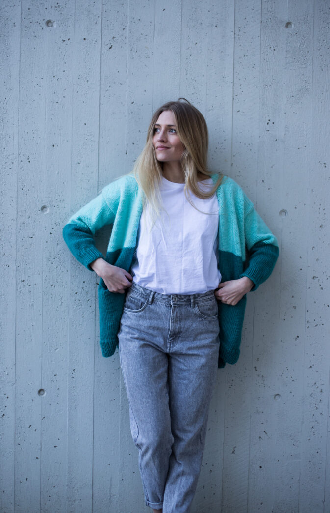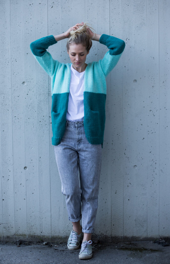 Strikkejakke til dame oppskrift. Jakken strikkes nedenfra og opp. Ermer strikkes ovenfra og ned. Montringsfri.