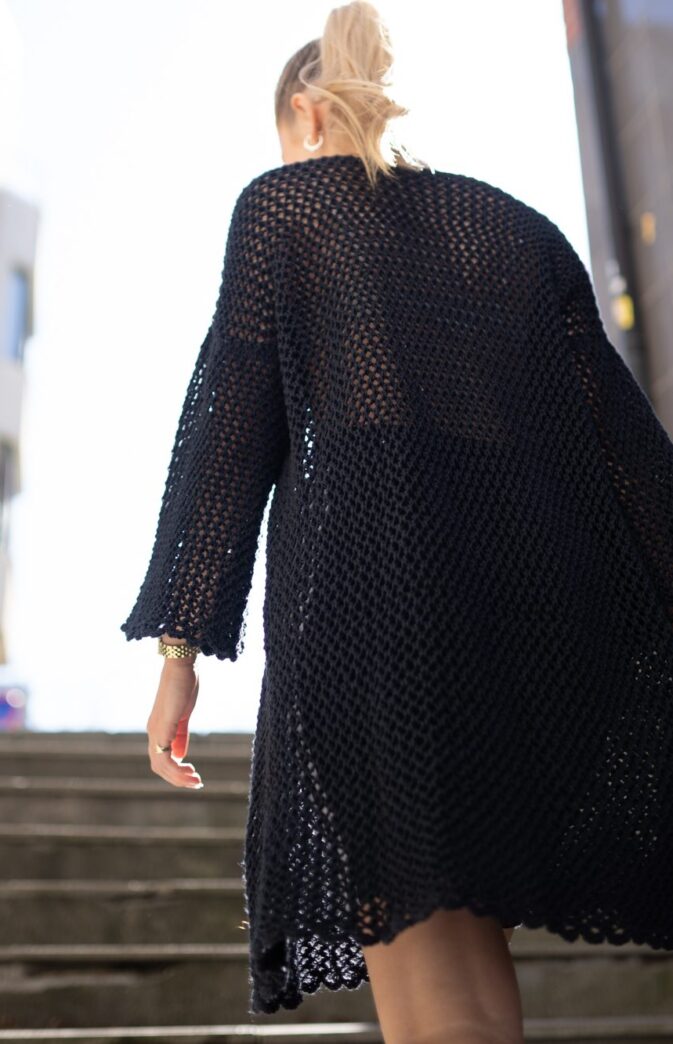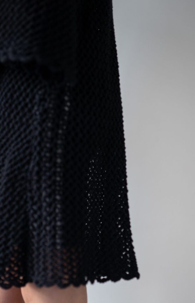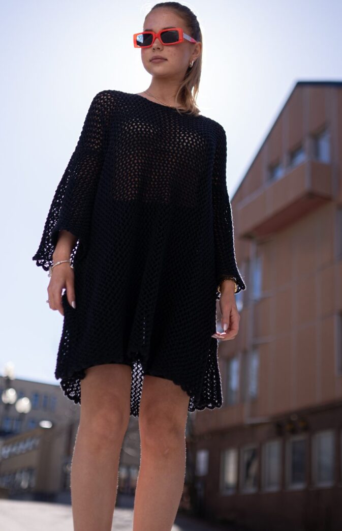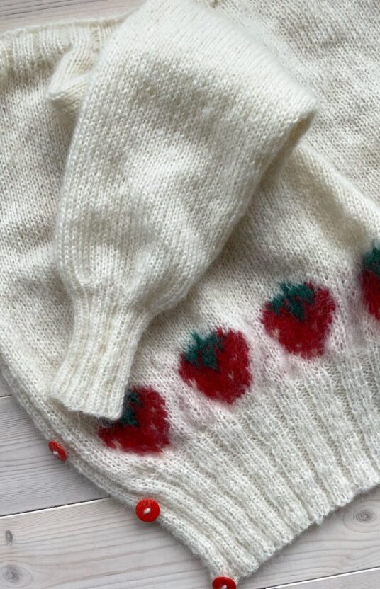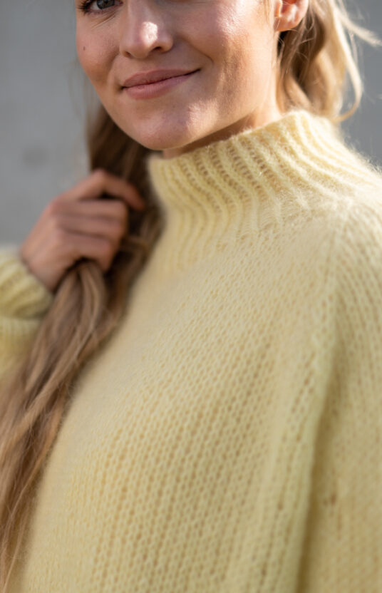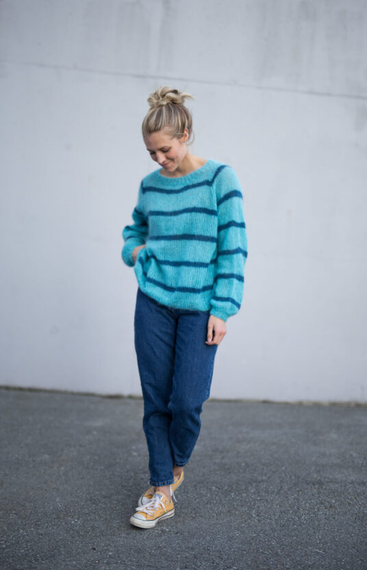 Navnet etter en av våre favorittserier “Emily in Paris”. Kjolen strikkes ovenfra og ned, frem og tilbake. Ermer strikkes ovenfra og ned, frem og tilbake, ved å strikke opp masker på for-og bakstykket. Enkel montering med mattress sting.