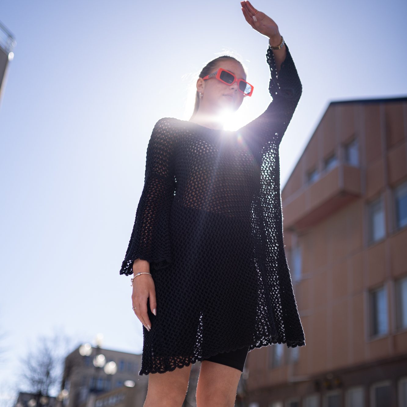 Sommerkjole med hullmønster i digg bomull. Fin blondekant som avslutning på ermer og kjole. Lik en heklet kjole, men her kan du strikke den!