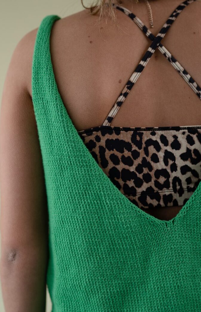 Avbildet i Cuddle Me Cotton «jelly bean green» (str M), rosa kort modell i «Hubba Bubba» (str L)
