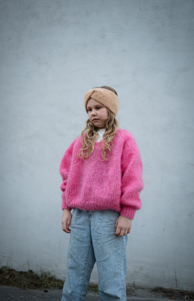 Pannebånd twist i vårt Fluff garn. Strikkeoppskrift pannebånd dame og barn. Oppskrift inkluderer to ulike måter å strikke pannebåndet på.