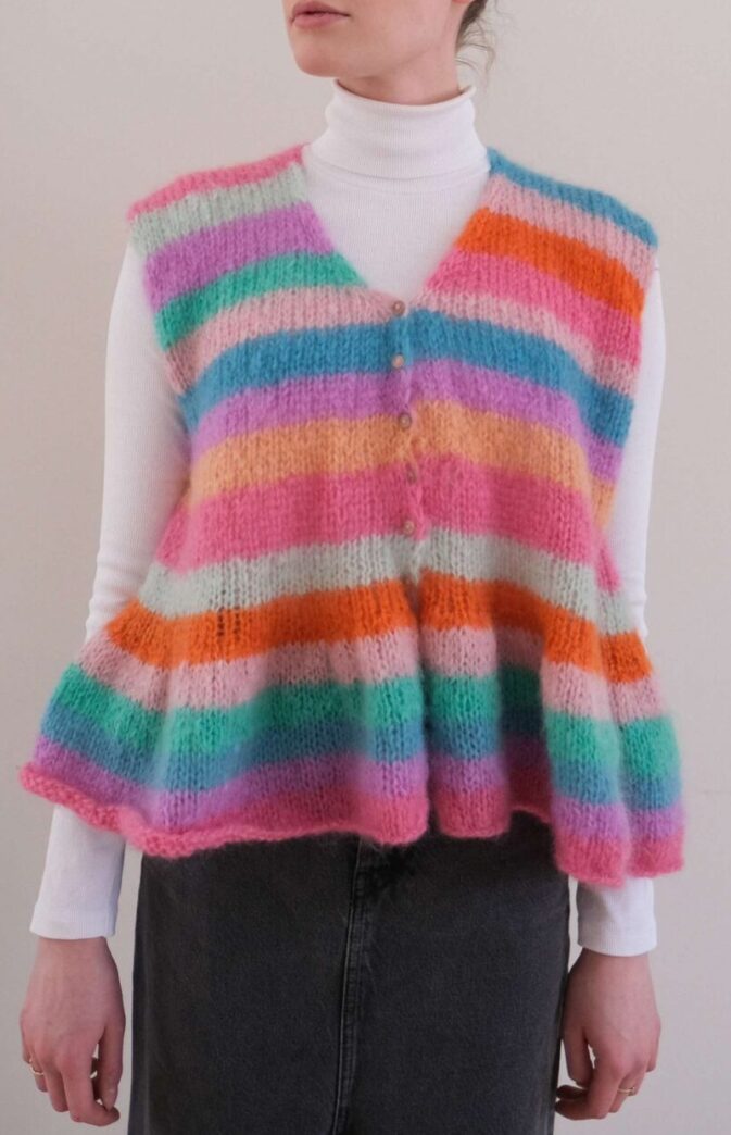 Vest i striper i farger: "Peach Cream", "Candy Pop Pink", "Must Have Mint", "Blooming Lilac", "Turqouise", «"Fairytale Pink", "Sky High Blue", «Oh la la Orange" Fluff mohair