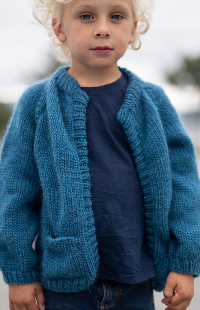 Oppskrift på cardigan til barn med lommer. Jakken strikkes ovenfra og ned med raglanøkning. Video for denne raglan finner du på videoer og vår YouTube kanal. Klassisk strikkejakke til barn med ballong ermer. Enkel og gøy strikk. Velg om du vil ha knappestolpe eller dobbelt brettet kant.