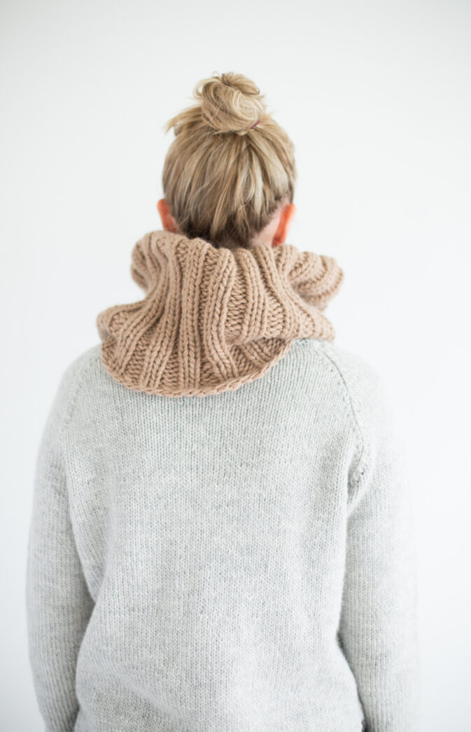 Strikkepakke med garn og gratis digital strikkeoppskrift. Enkel hals i ribb. Pakk deg inn i denne deilige tykke halsen. Strikket i dobbelt tråd på tykke pinner. Varm, lettstrikket og fin!