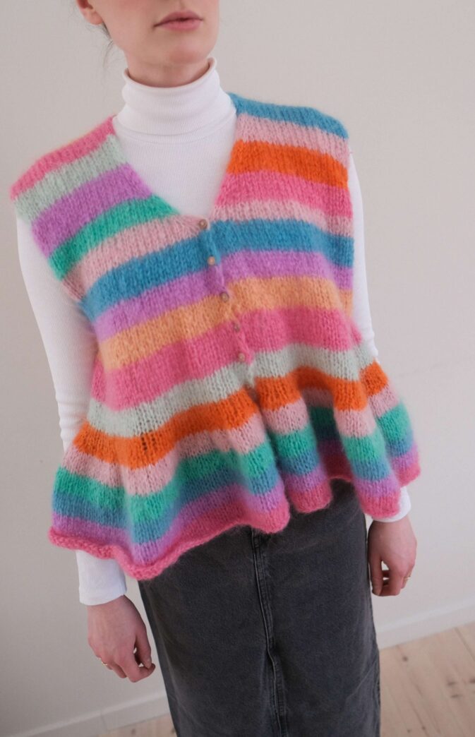 Strikkepakke med garn og gratis digital strikkeoppskrift. Strikkeoppskrift fluffy deilig vest