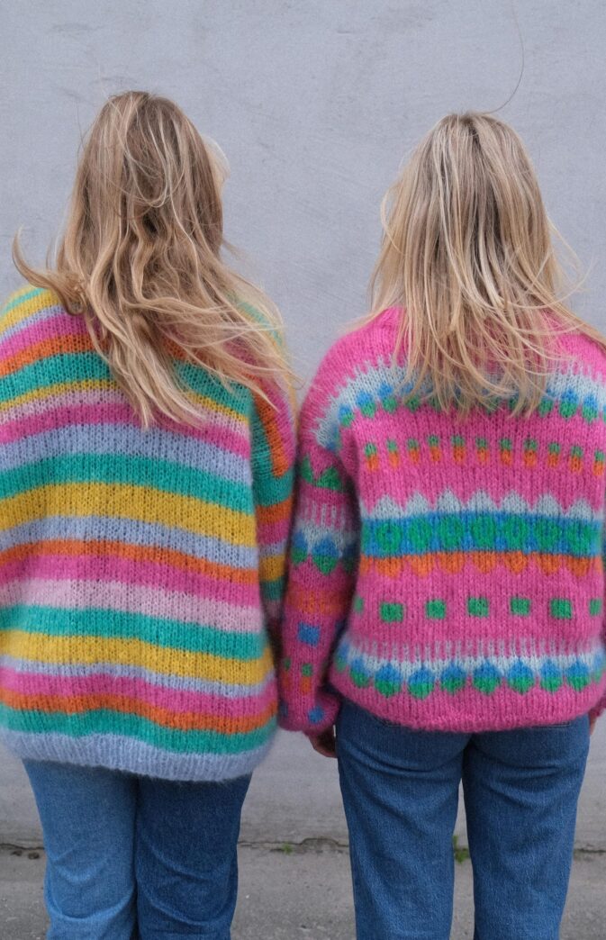 Strikkepakke med garn og gratis digital strikkeoppskrift. Strikkeoppskrift jakke i striper mohair. Paradisjakken med striper- en deilig stor, fluffy og skikkelig kosete jakke. Enkel strikkeoppskrift for strikkejakke med striper.