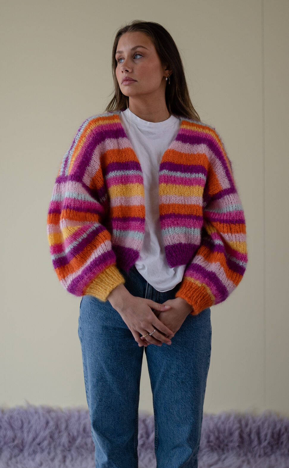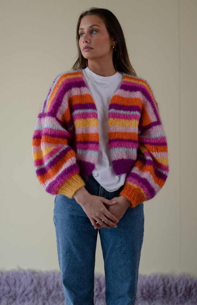 Strikkepakke med garn og gratis digital strikkeoppskrift. Moderne stripejakke. Denne oppskriften er på Paradisjakken kort modell, med smalere striper enn originalen «Paradise jacket stripes» (egen oppskrift), samt noen små justeringer i passform .