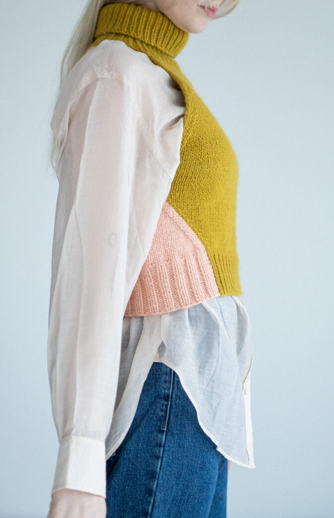 Strikkepakke med garn og gratis digital strikkeoppskrift. Slipover / vest i to farger. Vesten strikkes nedenfra og opp.