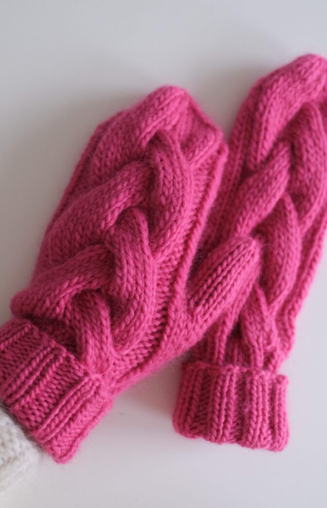 Deilige varme votter i Hip Wool med fin bred flette over hele. Fletten er lik som på vår Alba genser og har derfor fått samme navn.