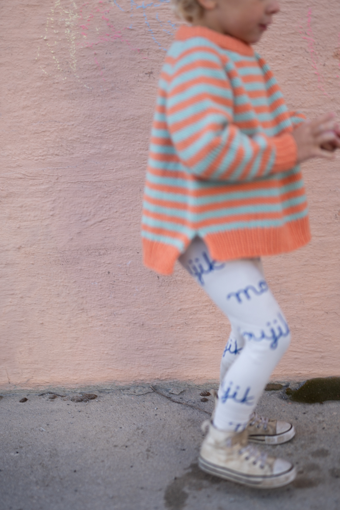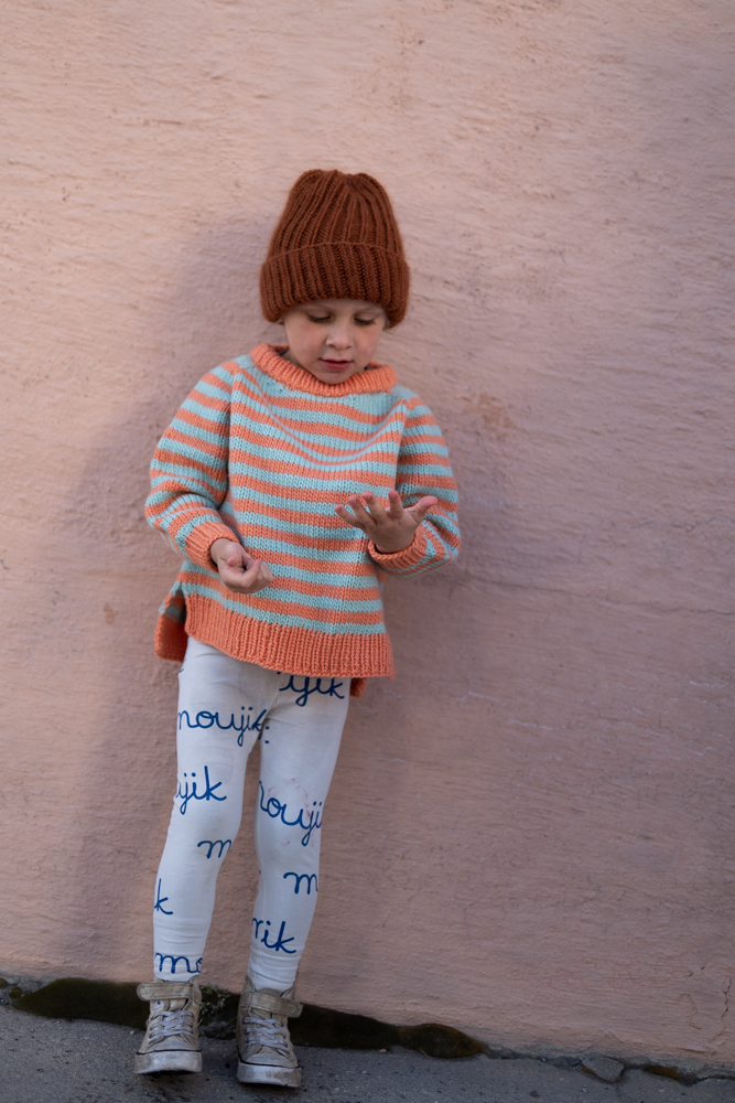 "Papaya Passion" og "Modest Mint" Hip Wool på gutt 4 år