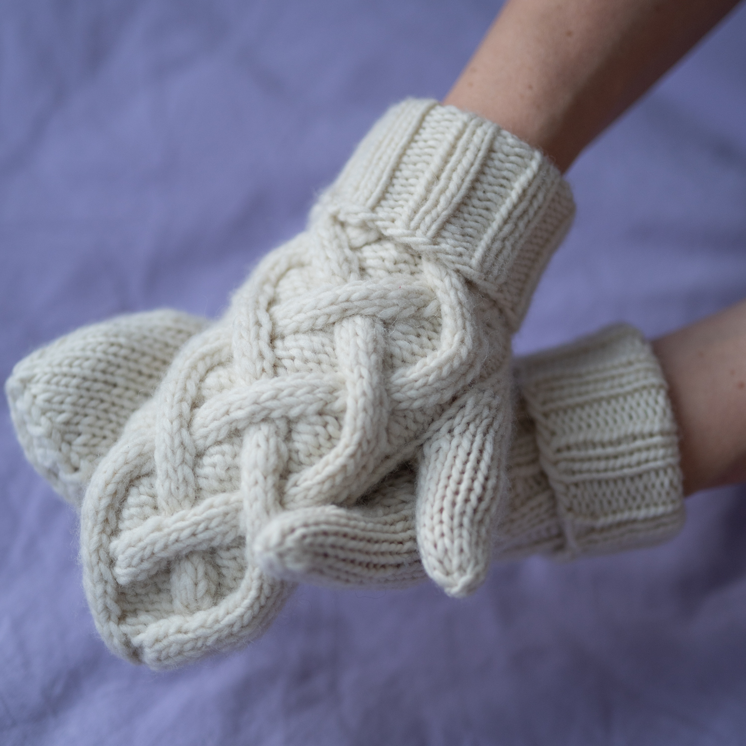 Strikkepakke med garn og gratis digital strikkeoppskrift. Klassiske strikkevotter til dame. Disse søte vottene strikkes i Hip Wool og har et klassisk flettemønster